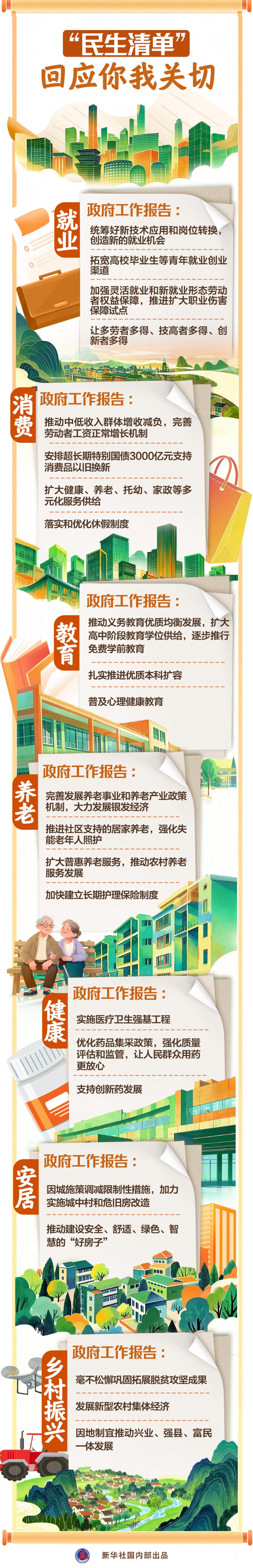 人民幸福安康是推動(dòng)高質(zhì)量發(fā)展的最終目的。梳理報(bào)告中有新意、有溫度的惠民政策,一份“民生清單”躍然眼前,勾勒出一幅幅與你我密切相關(guān)的民生圖景。