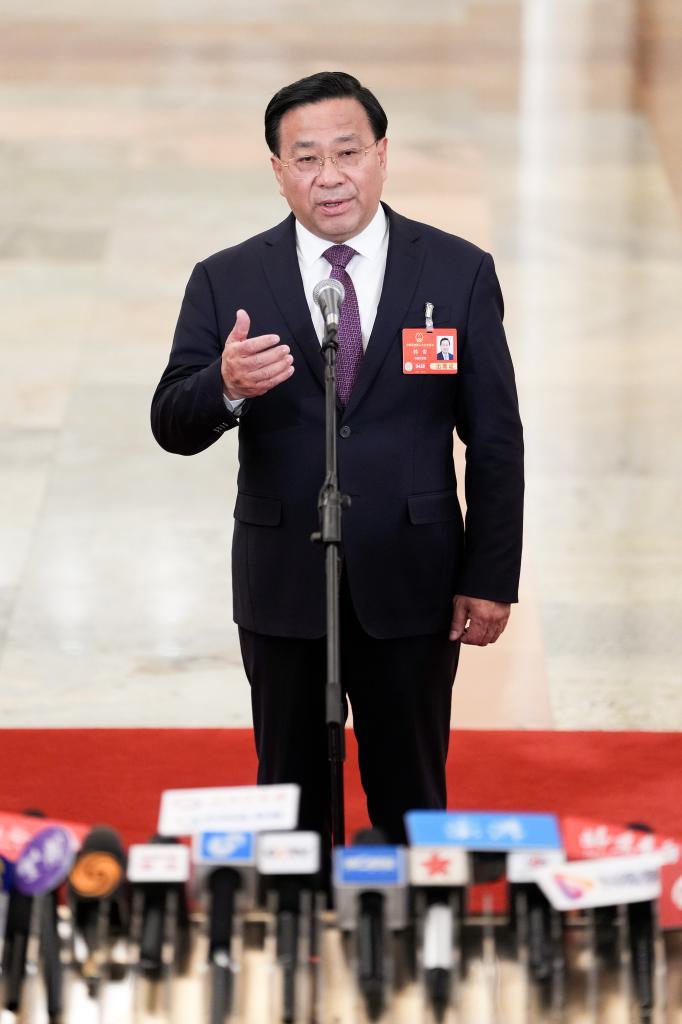 3月8日,第十四屆全國(guó)人民代表大會(huì)第三次會(huì)議第二場(chǎng)“部長(zhǎng)通道”集中采訪活動(dòng)在北京人民大會(huì)堂舉行。這是農(nóng)業(yè)農(nóng)村部部長(zhǎng)韓俊接受媒體采訪。