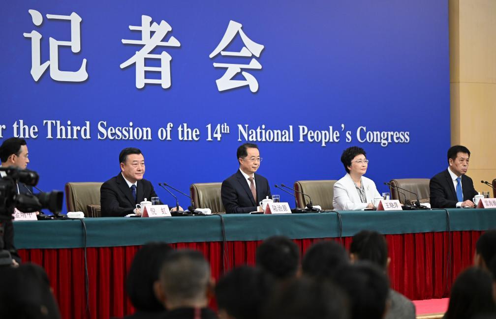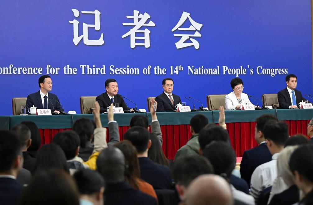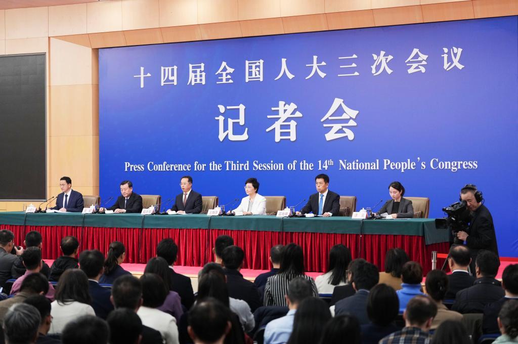 3月9日,十四屆全國人大三次會(huì)議在北京梅地亞中心新聞發(fā)布廳舉行記者會(huì)。民政部部長陸治原、人力資源和社會(huì)保障部部長王曉萍、住房和城鄉(xiāng)建設(shè)部部長倪虹、國家衛(wèi)生健康委員會(huì)主任雷海潮就民政、就業(yè)和社會(huì)保障、住房、衛(wèi)生健康等相關(guān)問題回答中外記者提問。