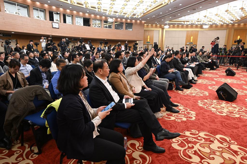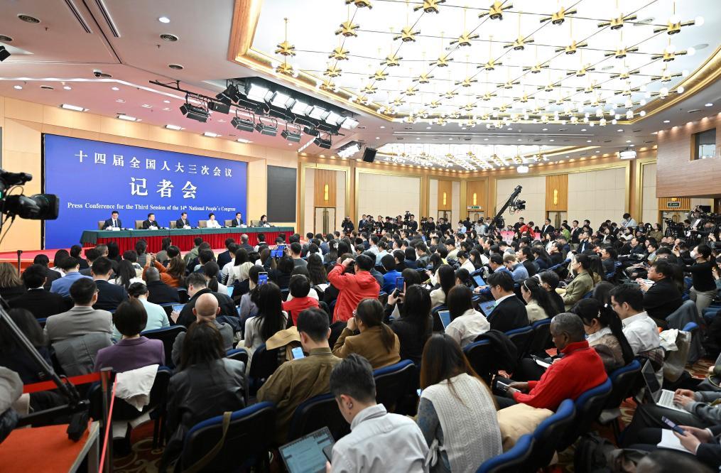 3月9日,十四屆全國人大三次會(huì)議在北京梅地亞中心新聞發(fā)布廳舉行記者會(huì)。民政部部長陸治原、人力資源和社會(huì)保障部部長王曉萍、住房和城鄉(xiāng)建設(shè)部部長倪虹、國家衛(wèi)生健康委員會(huì)主任雷海潮就民政、就業(yè)和社會(huì)保障、住房、衛(wèi)生健康等相關(guān)問題回答中外記者提問。這是記者在提問。