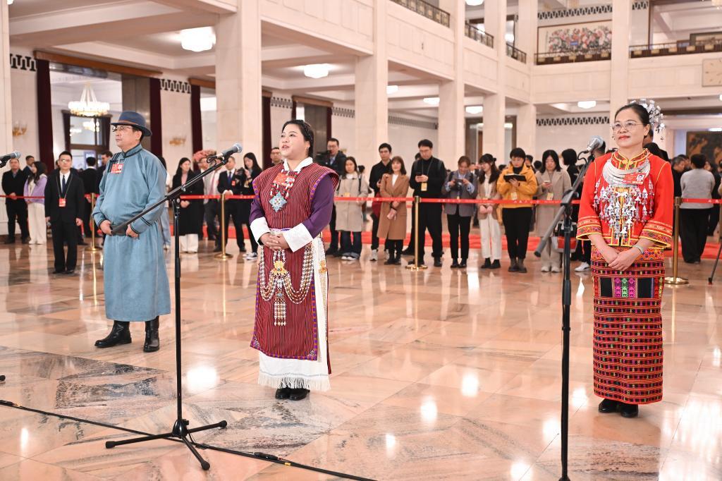 3月10日,全國政協(xié)十四屆三次會議第三場“委員通道”集體采訪活動在北京人民大會堂舉行。這是全國政協(xié)委員阿拉騰達來接受媒體采訪。