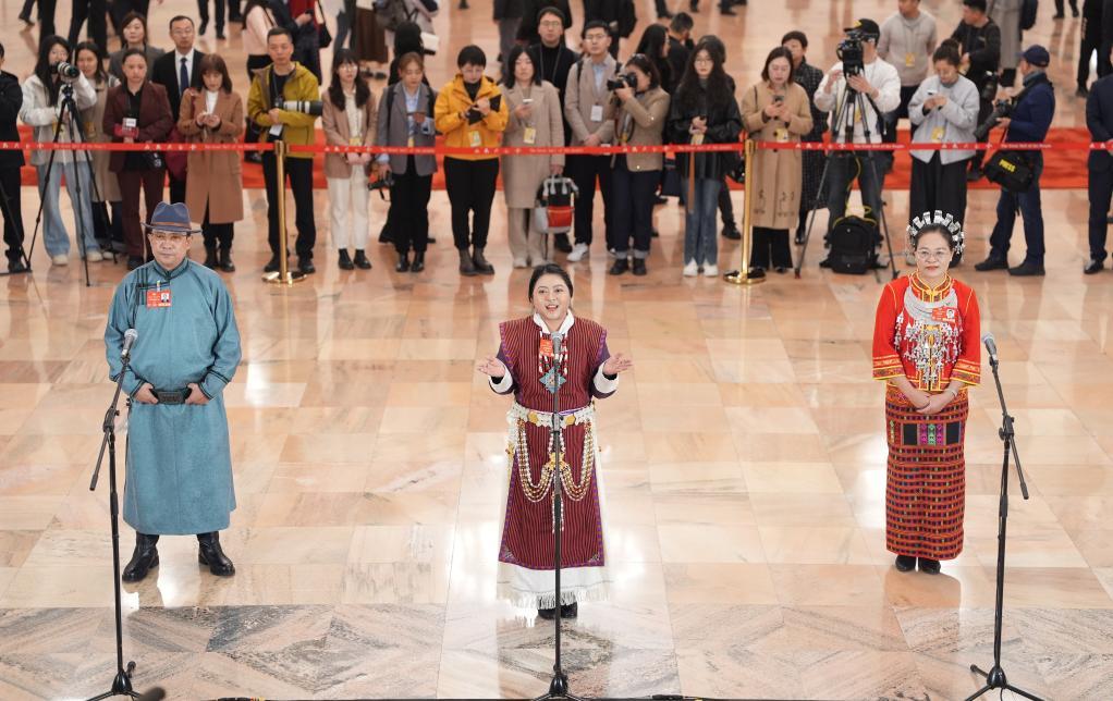 3月10日,全國政協(xié)十四屆三次會議第三場“委員通道”集體采訪活動在北京人民大會堂舉行。這是全國政協(xié)委員白瑪玉珍接受媒體采訪。