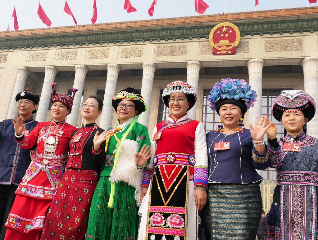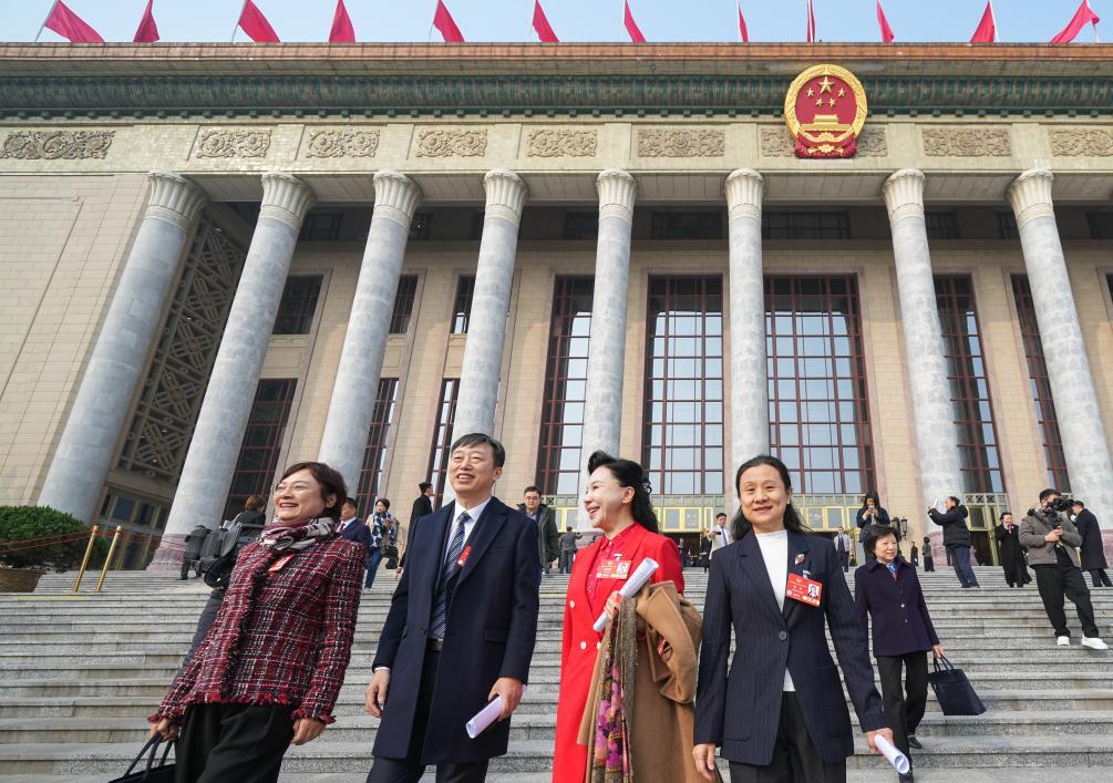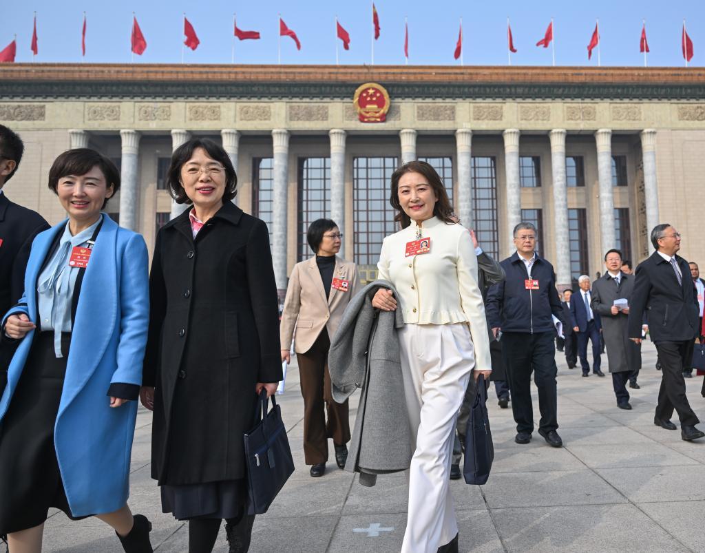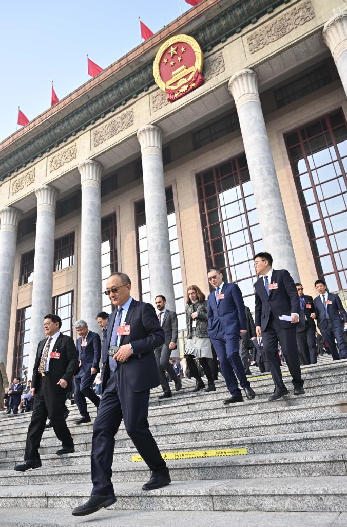 3月10日,全國政協(xié)十四屆三次會議在北京人民大會堂舉行閉幕會。這是閉幕會后,委員們走出人民大會堂。