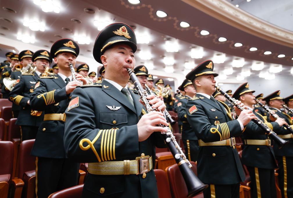 3月10日,全國政協(xié)十四屆三次會議在北京人民大會堂舉行閉幕會。這是軍樂團(tuán)在演奏。