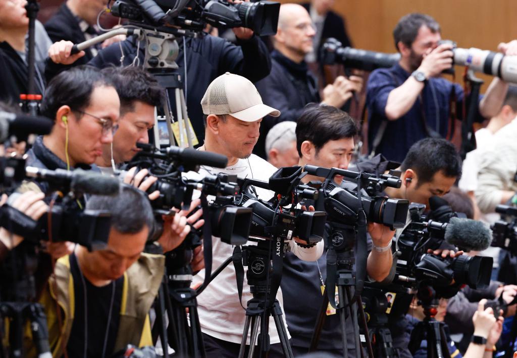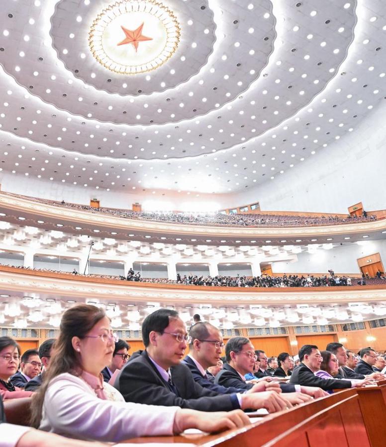 3月10日,全國政協(xié)十四屆三次會議在北京人民大會堂舉行閉幕會。這是記者在會場采訪。