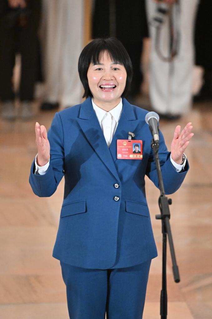 3月11日,第十四屆全國(guó)人民代表大會(huì)第三次會(huì)議第三場(chǎng)“代表通道”集中采訪活動(dòng)在北京人民大會(huì)堂舉行。這是全國(guó)人大代表譚新萍接受媒體采訪。