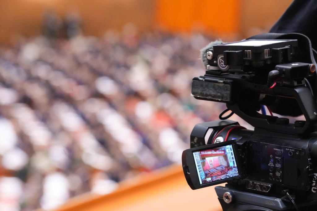 3月11日,十四屆全國人大三次會議在北京人民大會堂舉行閉幕會。這是記者在閉幕會上采訪。