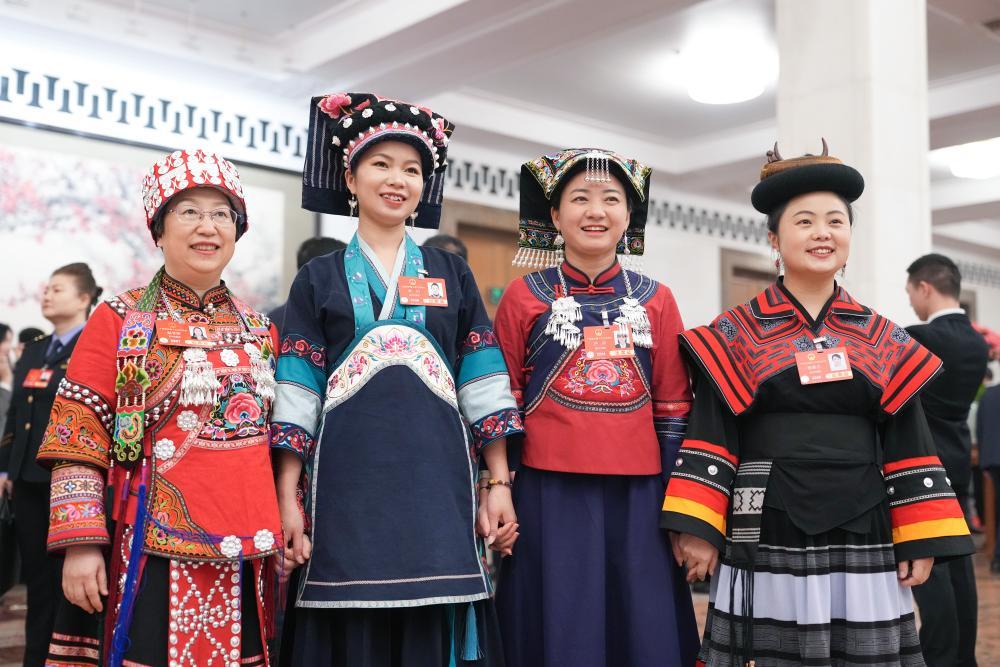 3月11日,十四屆全國人大三次會議在北京人民大會堂舉行閉幕會。這是代表們在合影。