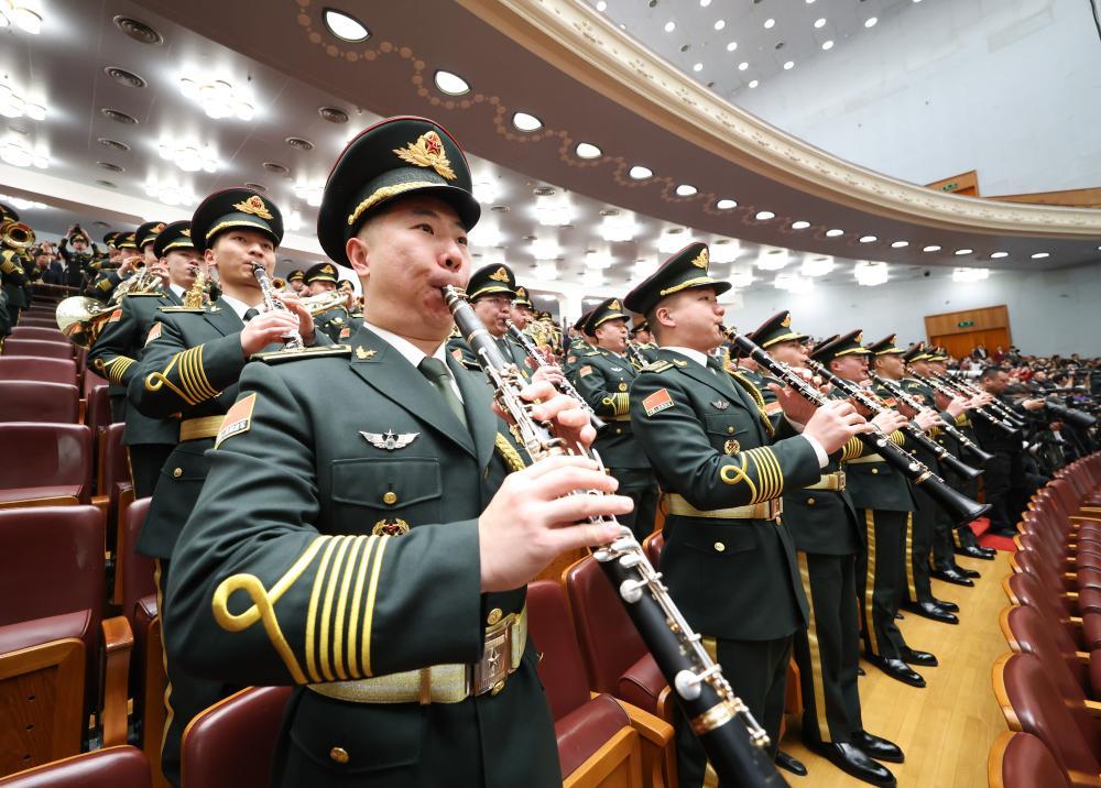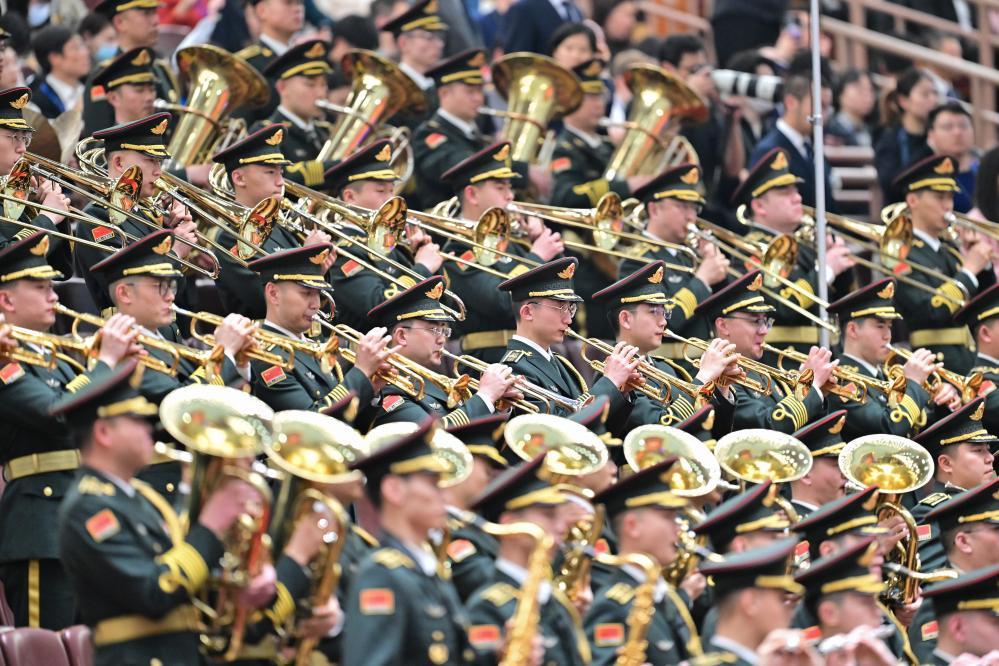3月11日,十四屆全國人大三次會議在北京人民大會堂舉行閉幕會。這是軍樂團(tuán)在演奏。