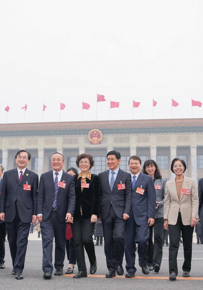 3月11日,十四屆全國人大三次會議在北京人民大會堂舉行閉幕會。這是閉幕會后,代表們走出會場。