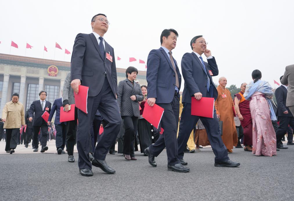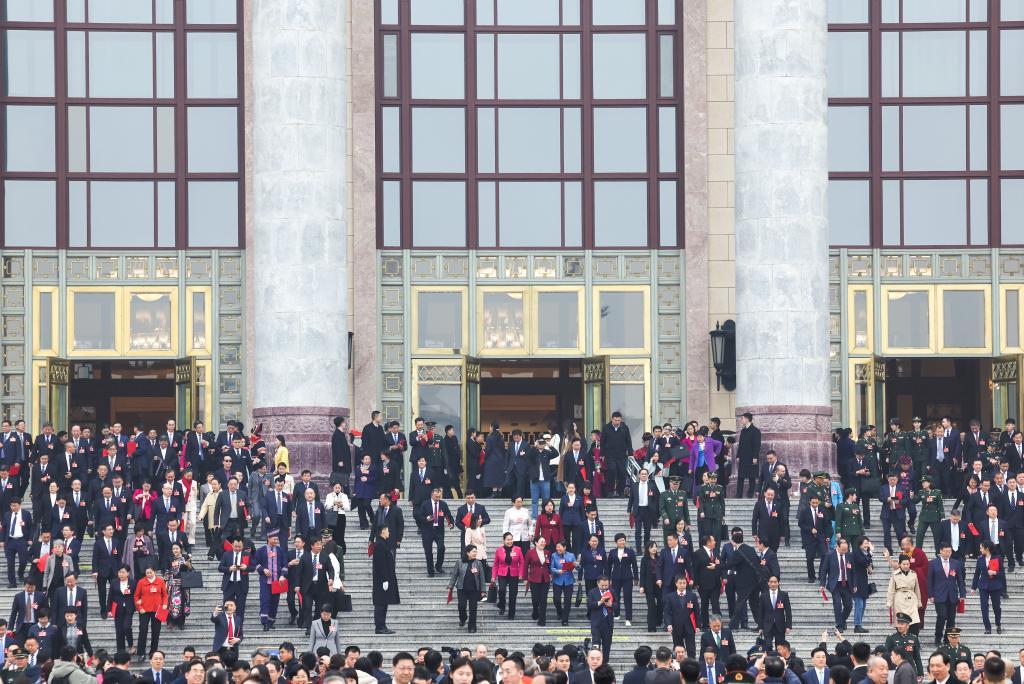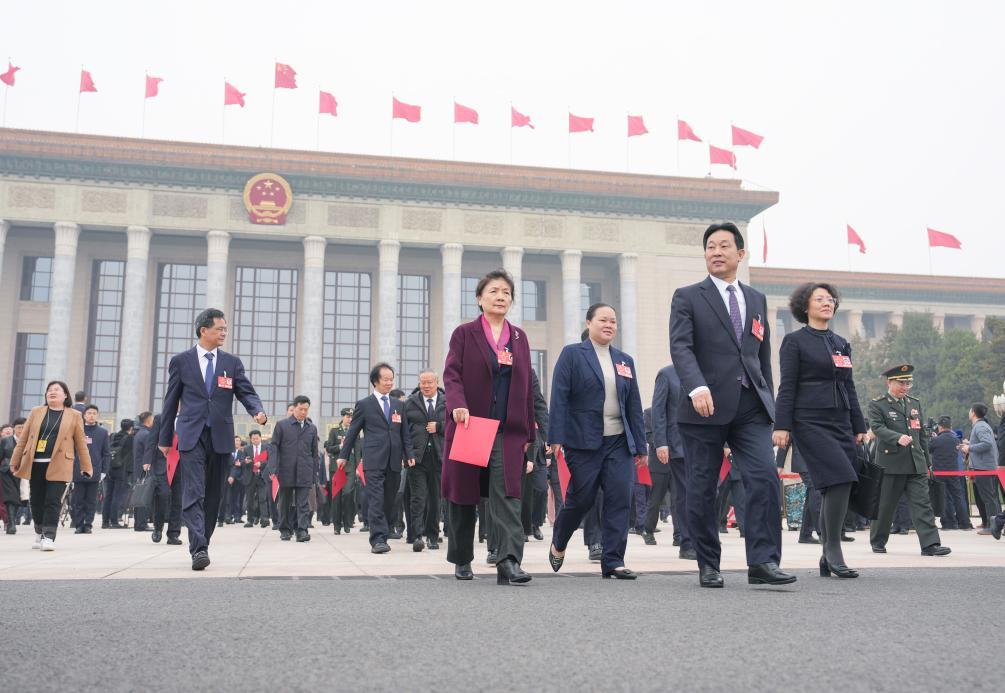 3月11日,十四屆全國人大三次會議在北京人民大會堂舉行閉幕會。這是閉幕會后,代表們走出人民大會堂。