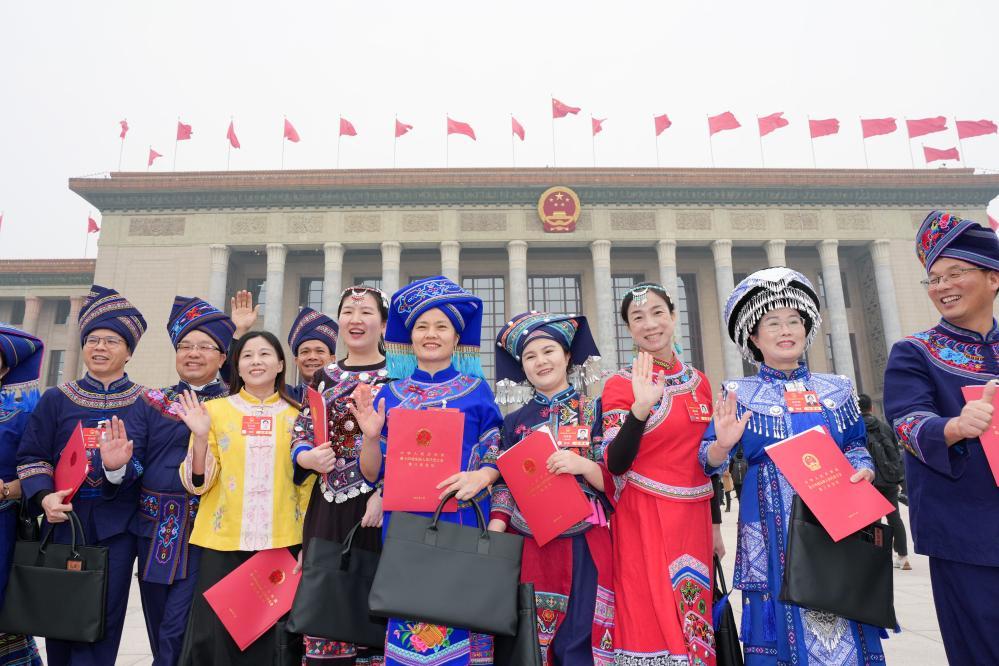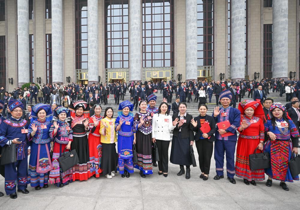 3月11日,十四屆全國人大三次會議在北京人民大會堂舉行閉幕會。這是閉幕會后,代表們在人民大會堂外合影。