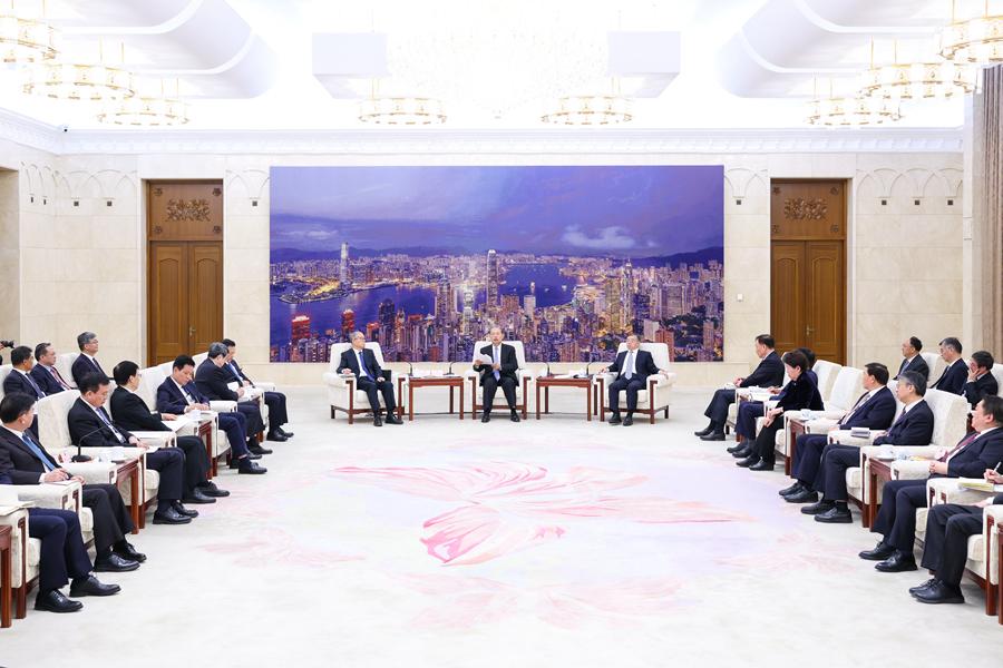 3月12日下午,中共中央政治局常委、全國人大常委會委員長趙樂際在北京人民大會堂看望參加十四屆全國人大三次會議新聞報道的中央主要新聞單位負責同志和新聞工作者,代表大會主席團和全國人大常委會,向參加大會新聞宣傳的全體新聞工作者表示問候和感謝。新華社記者 劉彬 攝